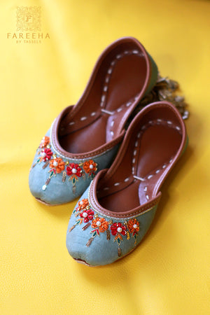Aster is multi weaved Khussa which is delightfully adorned with Pearl work everywhere with very comfortable cushioned sole and fine cowhide.