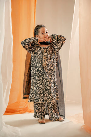 - Black and beige printed lawn cotton shirt and trouser