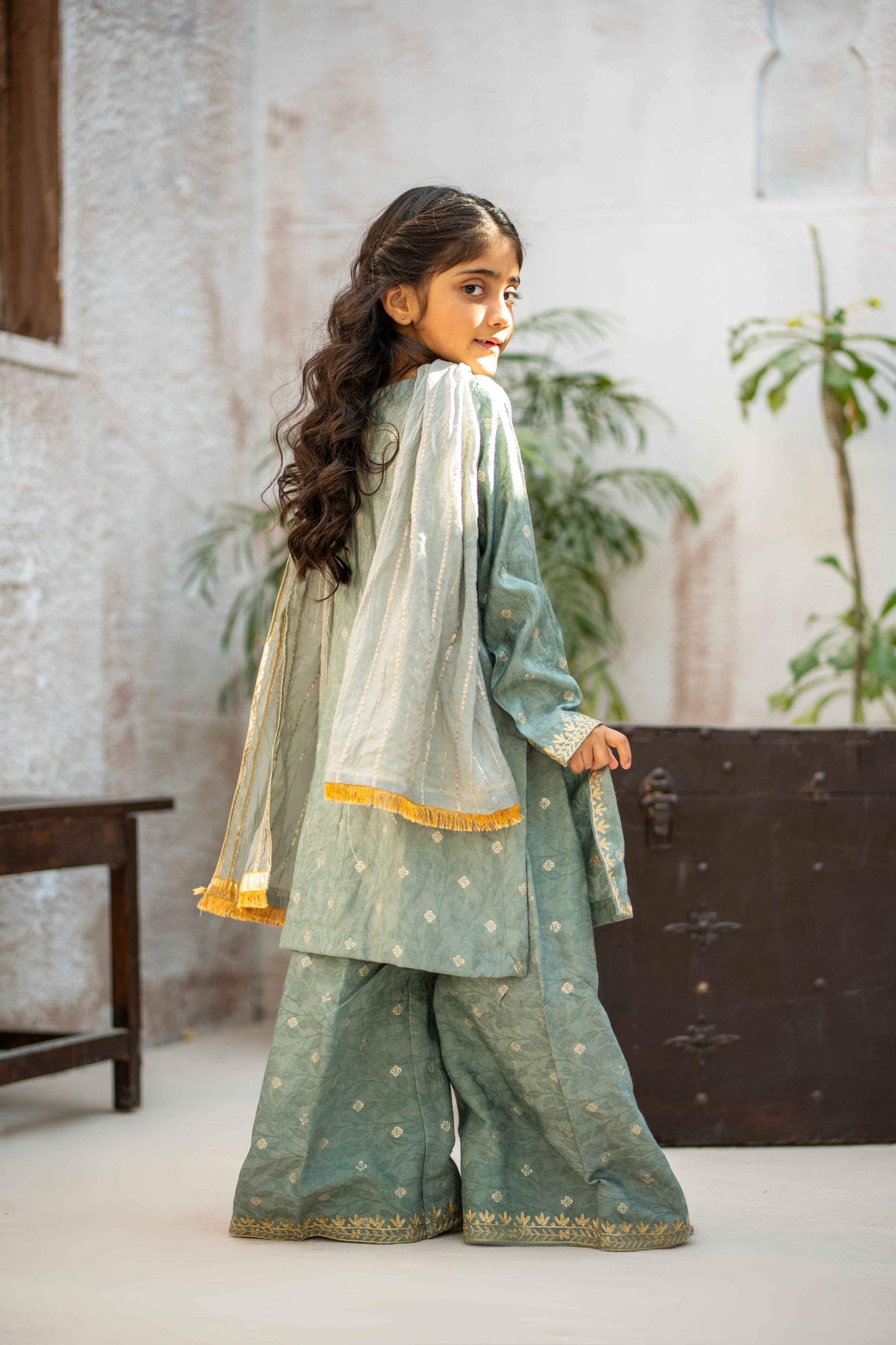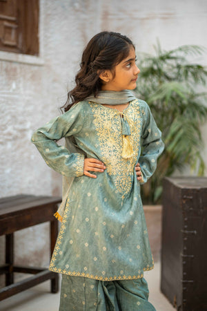 Embroidered 3pc. Aqua - Mother and Daughter (Ready-To-wear)