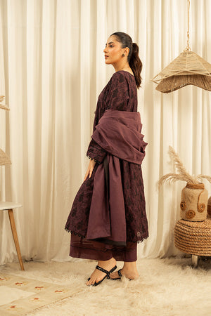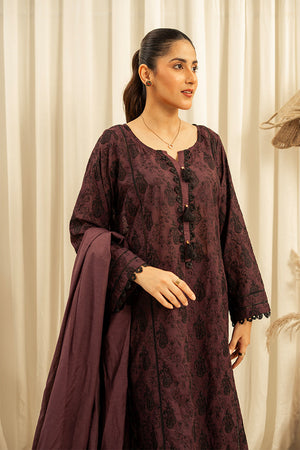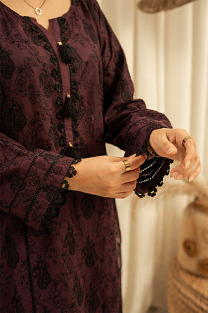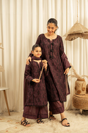 This elegant outfit is crafted from soft khadi cotton, showcasing intricate black embroidery throughout the shirt, complemented by embellishments of black tassels. It is beautifully paired with a cotton long trouser and a dupatta made from the same fabric, offering a stylish and comfortable look for any occasion.