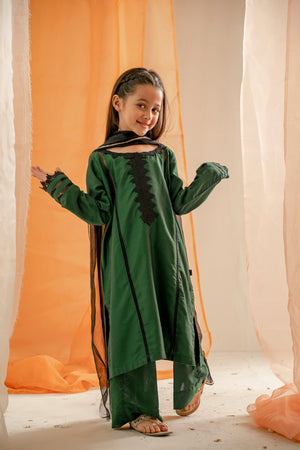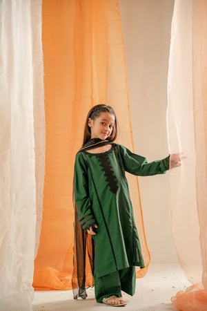 - Paired with matching bottle green cotton silk trousers and dupatta