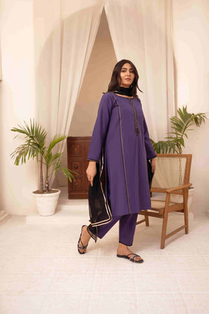 Hazel– a delightful ensemble for any occasion This soft cotton shirt and matching trousers offer comfort and style in one. Adorned with intricate black thread embroidery all over, the outfit exudes elegance. Complete the look with a graceful black dupatta,