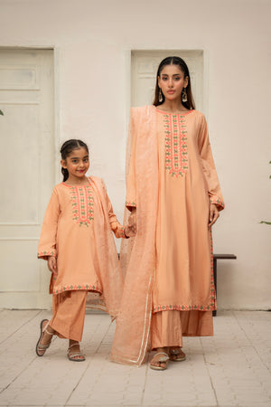 A classic cotton silk embroidered outfit, blending comfort with understated elegance paired with trouser and duppata — perfect for any special gathering.