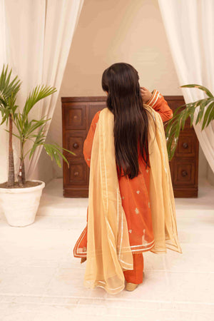 Introducing our elegant merino ensemble! This off-white cream-colored outfit is crafted from zari line cotton, offering both sophistication and comfort with attached lining. The shirt boasts a stunning multi-shade embroidery on the neckline, paired with a cotton lining garara. Complete the look with a graceful mustard yellow chiffon dupatta.