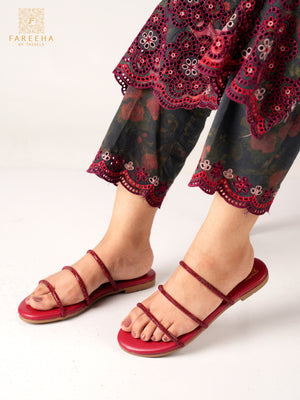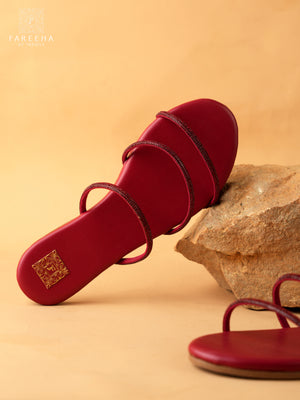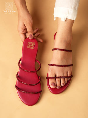 Red fancy flats with a shiny mesh on top, crafted with a red PU leather finish and a soft padded sole for comfort. Lightweight and comfortable, perfect for daily wear.