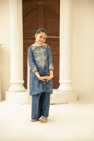 Charming matching outfits for mother and daughter, crafted from zari-embroidered Khaadi cotton with attached lining. Paired with a coordinating dupatta and trousers for a complete, elegant look. Perfect for festive occasions and special moments.