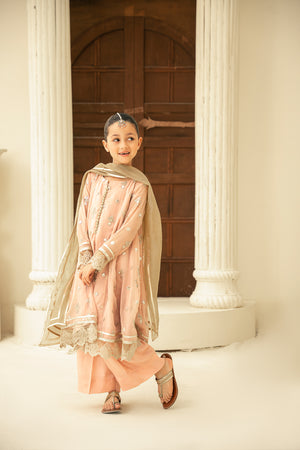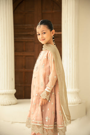 Elegant 3-piece outfit featuring an embroidered chiffon shirt with attached lining, paired with an embroidered organza dupatta and matching bottoms. Perfect for formal occasions and special celebrations.