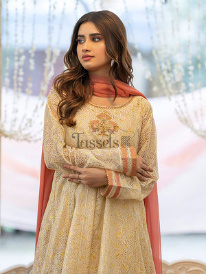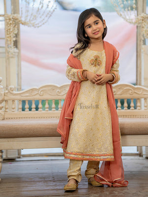 Shirt Fabric: Zari Net (Embroidery on Neckline), Bottom Fabric: Cotton Raw Silk, Duppata Fabric: Chiffon