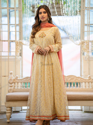 Shirt Fabric: Zari Net (Embroidery on Neckline), Bottom Fabric: Cotton Raw Silk, Duppata Fabric: Chiffon