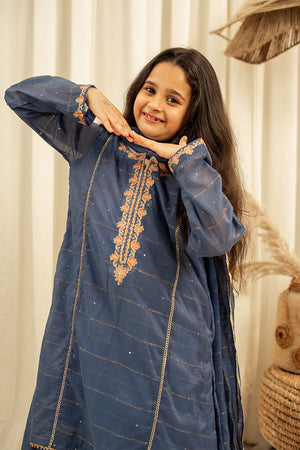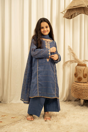 Sabrina is a three-piece, ready-to-wear outfit with beautiful multi-zari and pink embroidery on the neckline and sleeves. Made from soft, lightweight zari-lined cotton with attached lining, the shirt is paired with a comfortable cotton-on-trouser and dupatta, perfect for any occasion.