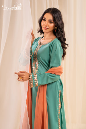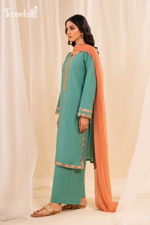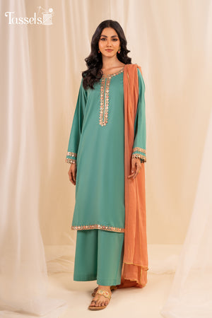 It a ready-to-wear mother-daughter duo in a graceful shade of sky blue, in self pure cotton lawn shirt and bottoms along with a chiffon dupatta. embroidered laces on neckline sleeves and bottom
