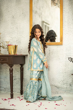 Stitched Embroidered 3pc. Aqua Kids (Ready-To-wear)