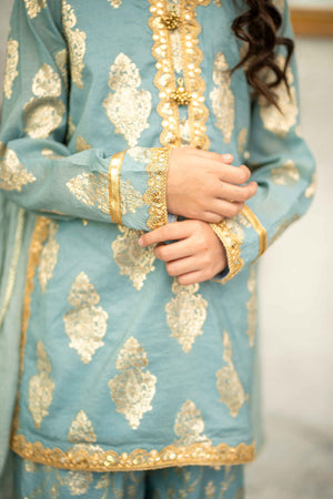 Stitched Embroidered 3pc. Aqua - Mother and Daughter (Ready-To-wear)