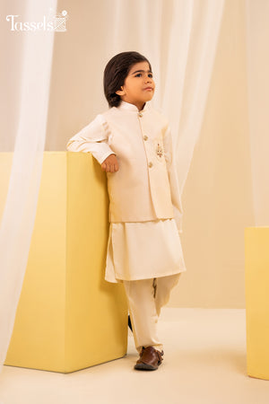 Waist Coat 3 pc Ready to Wear T-Gold White