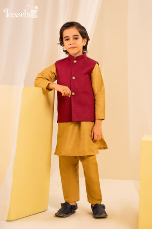 classic plain waist coat design in self fabric Paired with tassels plain mustard cotton kurta and trouser