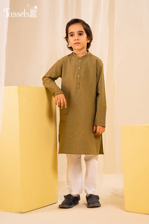 olive kurta pajama set design in soft cotton paired with white trouser . Must have this for upcoming wedding and eid season
