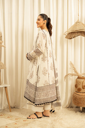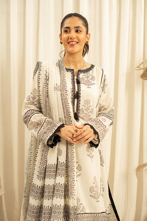 Veera is a three-piece outfit crafted from soft cotton lawn, featuring detailed hand-block printing on the shirt, dupatta, and trouser. The neckline and sleeves are beautifully adorned with intricate embroidery, while the outfit is paired with a heavy block-printed dupatta and trouser, making it a perfect blend of artistry and elegance.