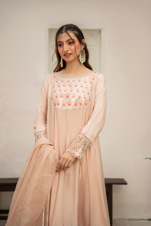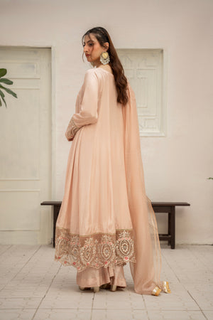 An elegant raw silk outfit featuring delicate embroidery — a timeless choice for festive and formal occasions.